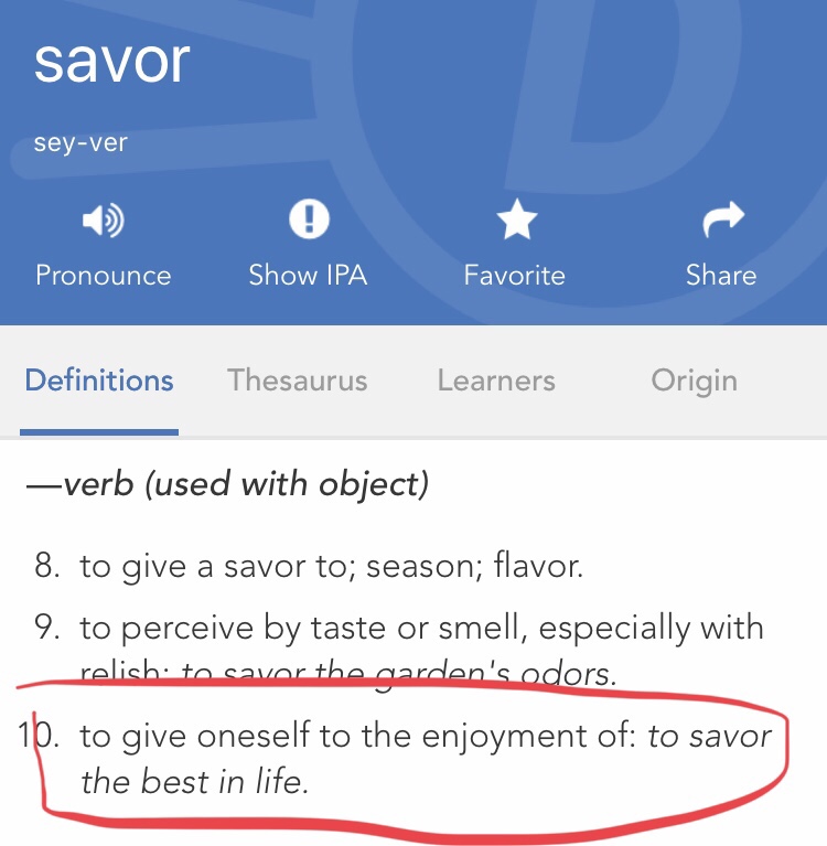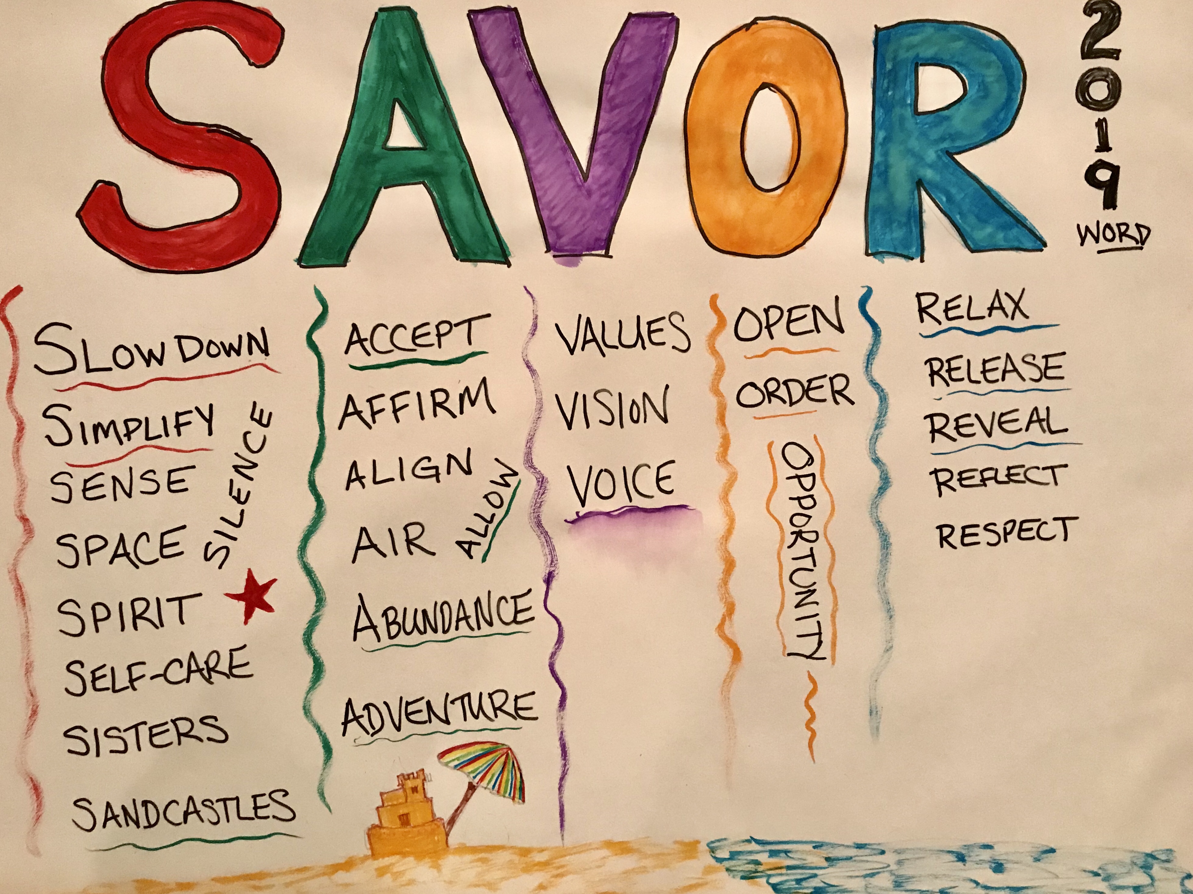“Savor” eventually came to me. And then words that started with the letters of “savor” kept showing up, linked to this idea of being fully present and savoring various aspects of my life and also what I want to bring into my life this year. So bring it, 2019. ❤️🌟