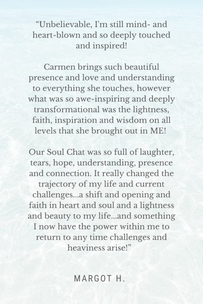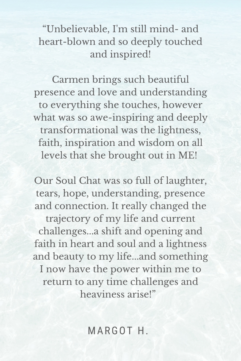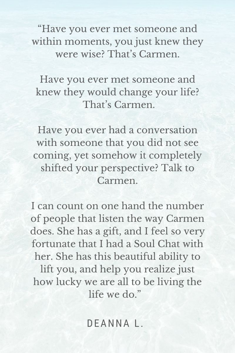 Soul Chat Testimonials What people have said about our chats… Live. Love. Savor Life. Instagram Facebook Mail Carmen Walsh 2023